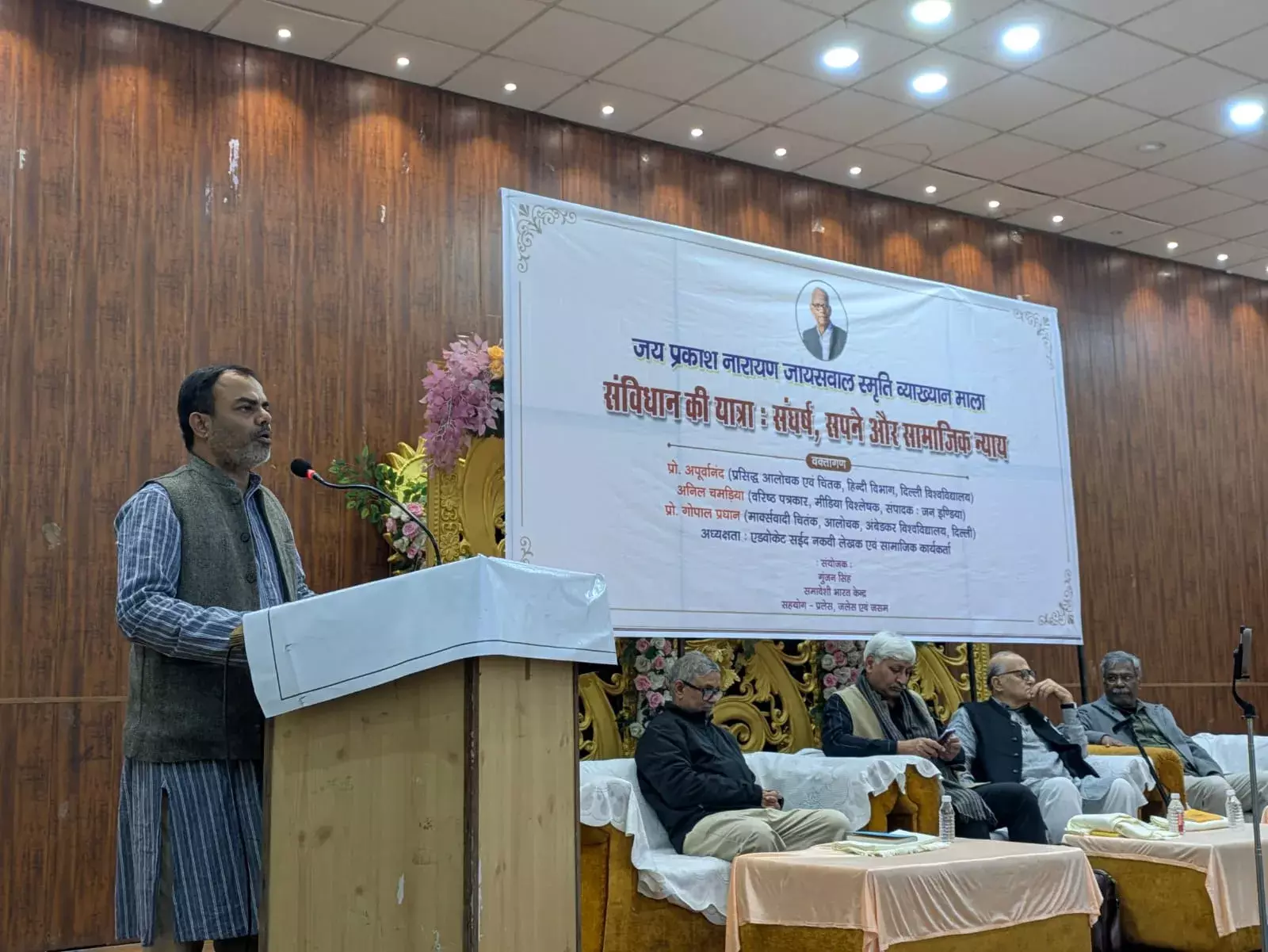 वरिष्ठ पत्रकार अनिल चमड़िया ने जय प्रकाश जयसवाल के व्यक्तित्व और संघर्षों को याद करते हुए कहा कि संविधान नागरिक अधिकारों के सतत संघर्षों से बनता है। उन्होंने कहा कि आज सेकुलरिज्म और समाजवाद जैसे संवैधानिक मूल्यों को कमजोर करने की कोशिशें की जा रही हैं।