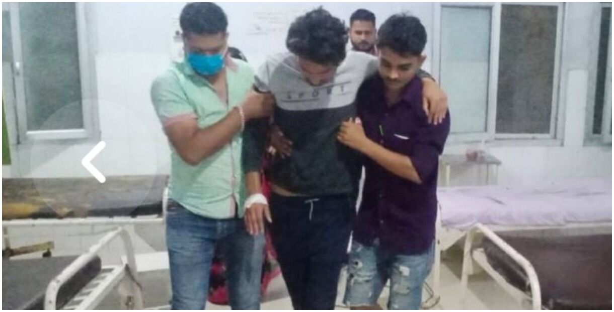 पुलिसिया पिटाई के बाद सहारा लेकर चलता युवक. (photo - social media)