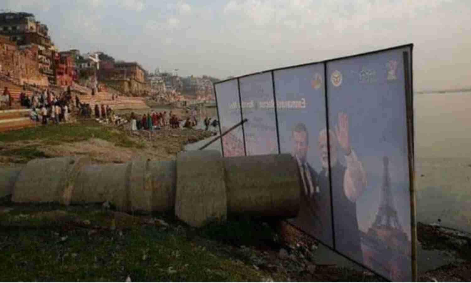 इस बीच गुजरते हुए मेरी नजर उस नाले पर पड़ी, जिस गंदगी को छुपाने के लिए मोदी और फ्रांस के राष्ट्रपति का बड़ा—सा कउआउट इस्तेमाल हुआ था। वहां गुजरते हुए जीजा बोले, 'ई देखा हो... मोदिया के कहां लगा देएल हुवएं सब।' पीछे से किसी ने कहा 'एही लायक हईए हवें।'