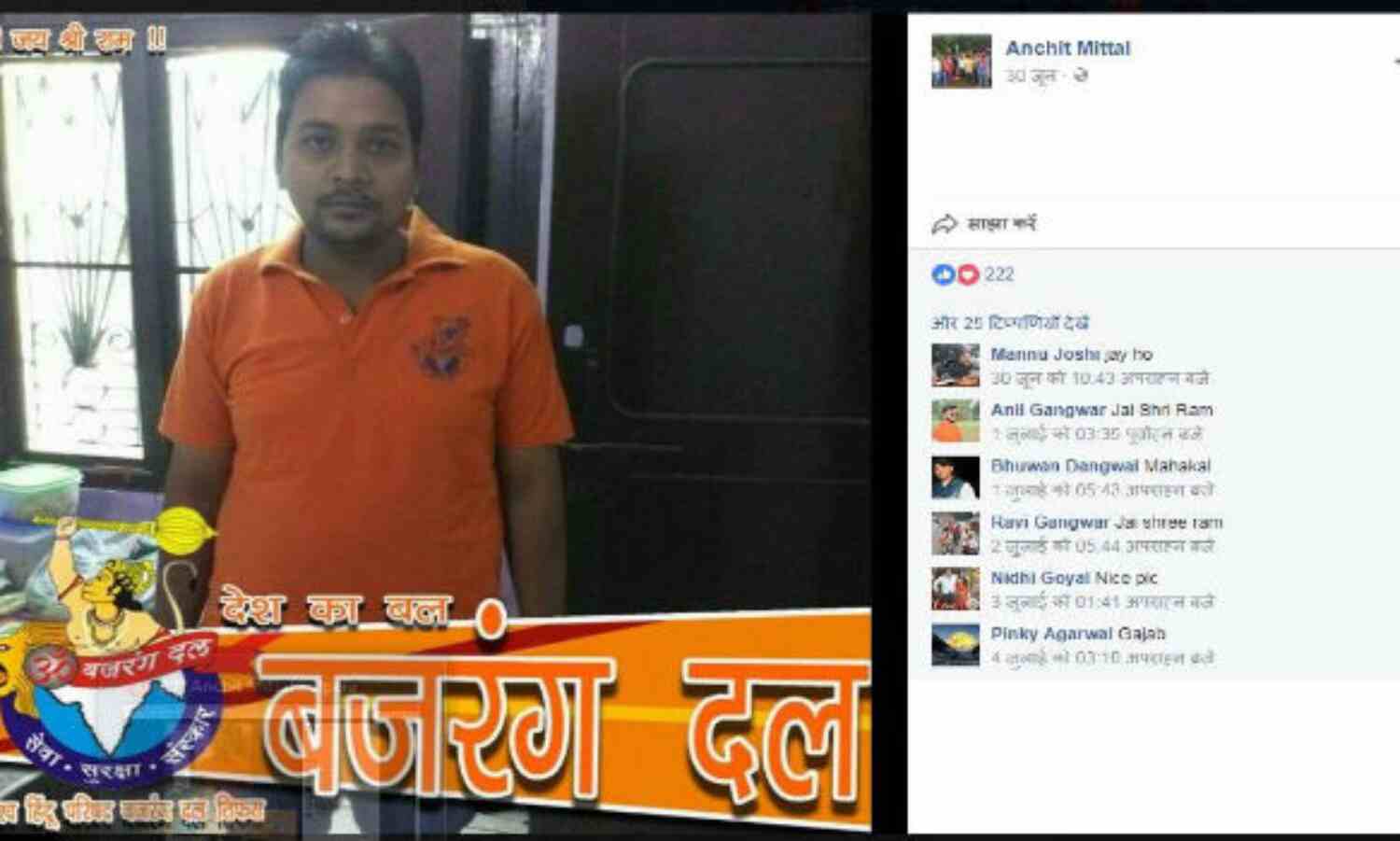 बजरंग दल नेता अंकित मित्तल की फेसबुक प्रोफाइल अंचित मित्तल के नाम से है, जिसमें दावा किया गया है कि वह रामनगर का बजरंग दल नगर अध्यक्ष है। उसके दोस्त बताते हैं कि उसका असली नाम अंकित मित्तल है, लेकिन वह फेसबुक प्रोफाइल अंचित मित्तल के नाम से चलाता है। उसने कई सारी पोस्टों में अपने को प्रधानमंत्री मोदी का प्रबल समर्थक बताते हुए उनकी तस्वीर शेयर की है। हालांकि रामनगर के बजरंगदल कार्यकर्ताओं का कहना है कि वह कुछ महीने पहले था अध्यक्ष, अब नहीं है।