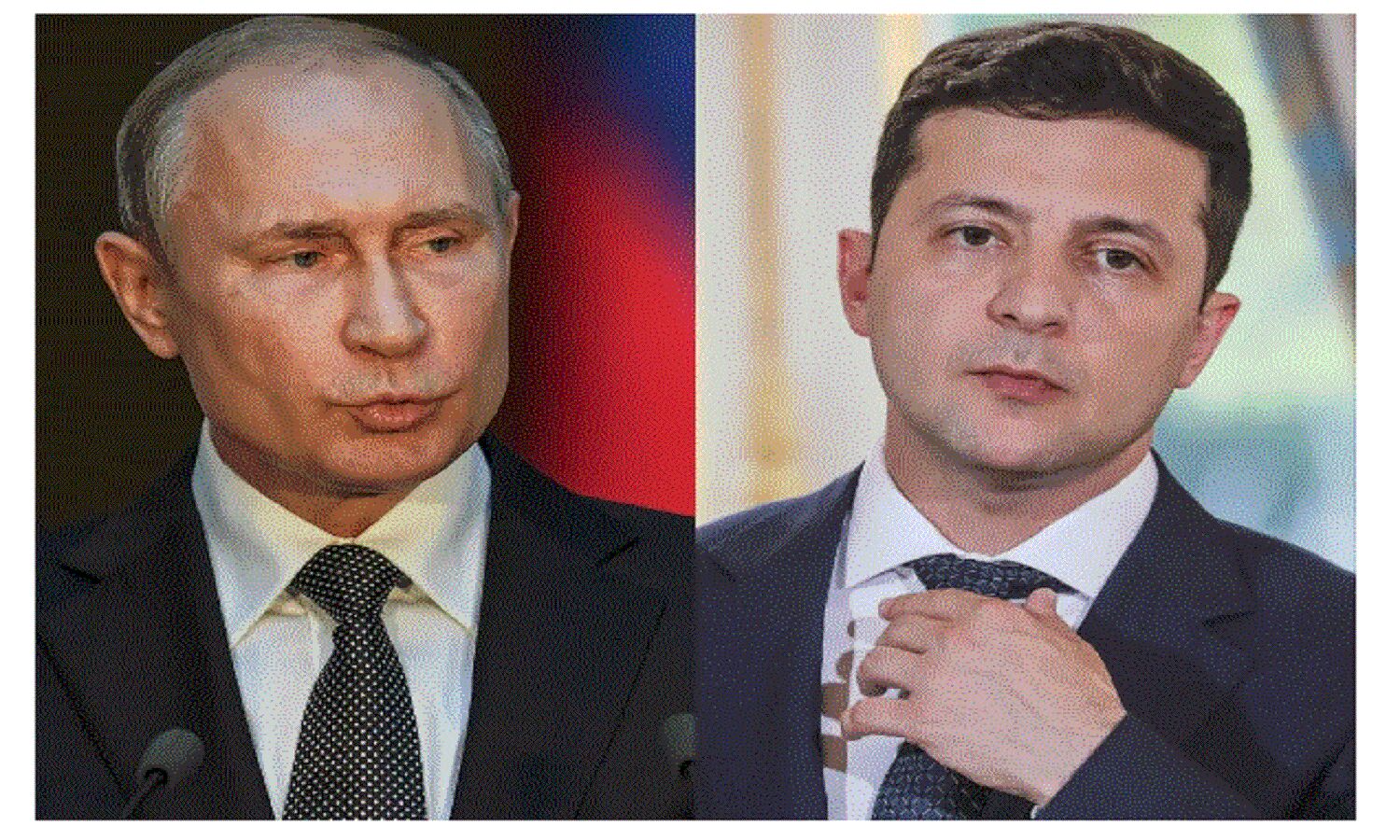 रूसी राष्ट्रपति व्लादिमिर पुतिन और यूक्रेन के राष्ट्रपति वोलोदिमिर जेलेंस्की।