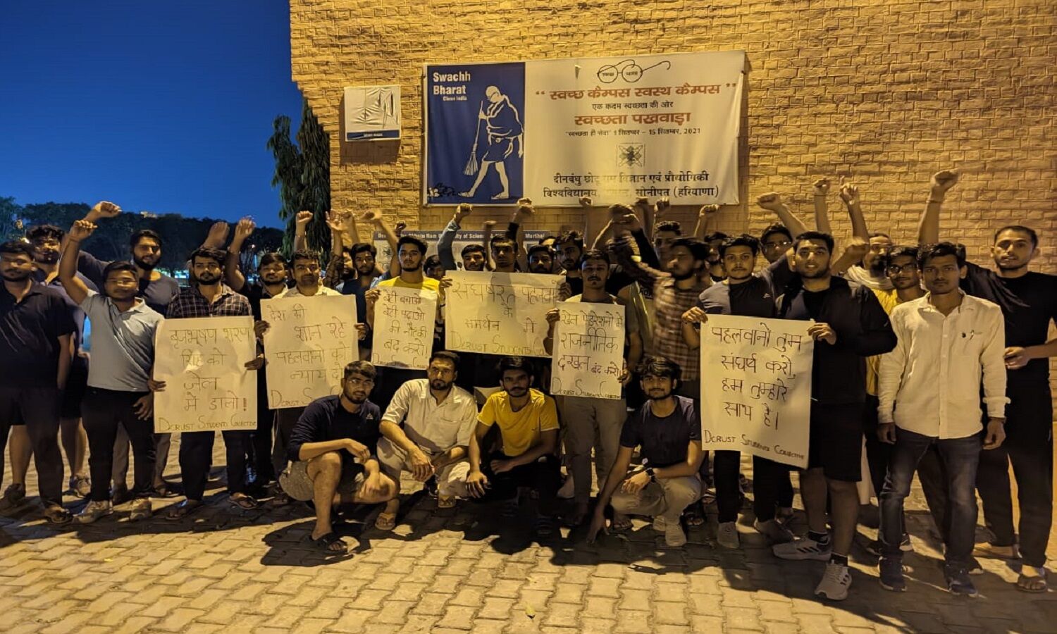 दीन बंधु छोटूराम विज्ञान और प्रौद्योगिकी विश्वविद्यालय के सभी छात्र और शोधार्थी पहलवानों के समर्थन में मुश्तैदी के साथ खड़े हैं। संघर्ष की जीत तक हम अपने पहलवान भाइयों-बहनों और साथियों के साथ कंधे से कंधा मिलाकर डटे रहेंगे। इस प्रदर्शन में विक्रमजीत, ताराचंद, रणधीर, सौरभ, विजय, परवीन, सोमवीर, विकाश आदि तमाम शोधार्थी और विद्यार्थी शामिल रहे।