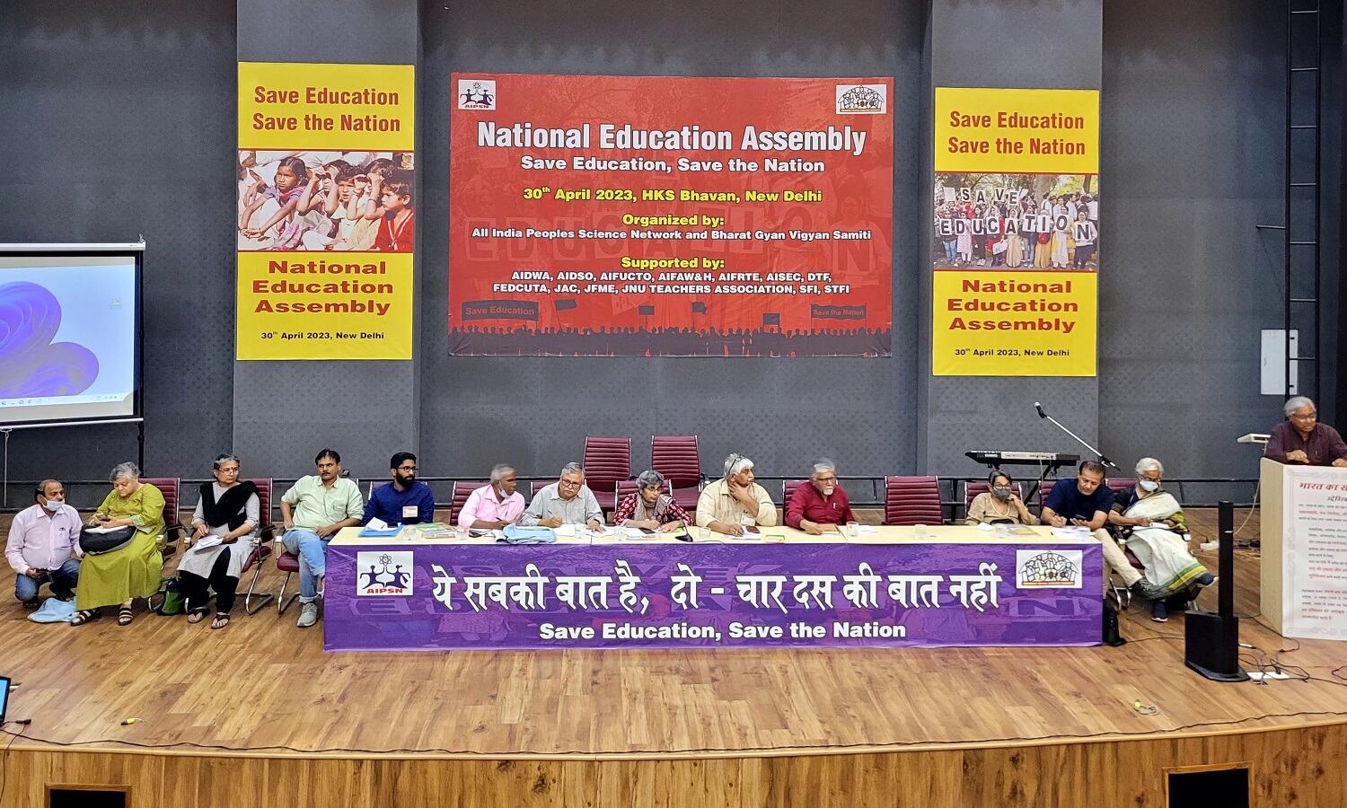 असेंबली ने एक वैकल्पिक जन-समर्थक शिक्षा नीति का आह्वान किया, जो सार्वजनिक शिक्षा के इर्द-गिर्द निर्मित हो, सभी वर्गों के लिए सुलभ हो, और एक आधुनिक, सांस्कृतिक रूप से विविध, न्यायसंगत और आत्मनिर्भर अर्थव्यवस्था और समाज में भारतीय लोगों की क्षमता को आगे बढ़ा रही हो। सभा ने एनईपी और इसकी अवांछनीय विशेषताओं को उलटने के लिए और एक प्रगतिशील जन-समर्थक सार्वजनिक शिक्षा प्रणाली की दिशा में काम करने के लिए राज्य सरकारों के सहयोग और समर्थन की मांग की। बीस से अधिक राज्यों और तीस संगठनों के लगभग 700 प्रतिनिधियों ने सभा में विश्वविद्यालयों, शैक्षिक और शैक्षणिक संस्थानों और विभिन्न सहायक संगठनों की राज्य इकाइयों का प्रतिनिधित्व किया। कला जत्थों के माध्यम से, मध्य प्रदेश, झारखंड, बिहार, हरियाणा और ओडिशा के सांस्कृतिक कार्यकर्ताओं ने देश भर में 500 से अधिक प्रदर्शनों का आयोजन किया, जो एक महीने से अधिक की अवधि में विभिन्न कस्बों और गांवों में दिल्ली के रास्ते में हुए। सभा में मौजूद सांस्कृतिक कार्यकर्ताओं ने एनईपी खारिज होने तक अपने जत्थों को जारी रखने का संकल्प लिया!