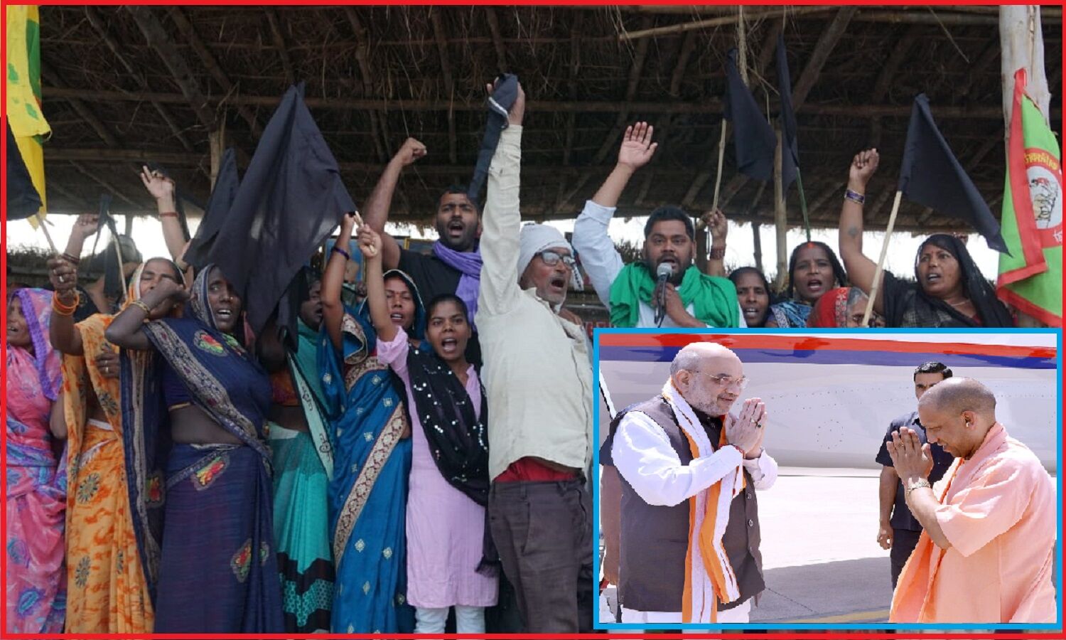 खिरिया बाग में ‘किसान मजदूर विरोधी योगी-शाह वापस जाओ’ के लगे नारे, लहराये गये काले झंडे