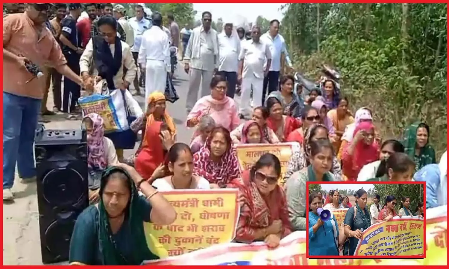 इलाज मांगती मालधन की बीमार जनता को नशा बांट रही पुष्कर सिंह धामी सरकार, महिलाओं ने दिया धरना