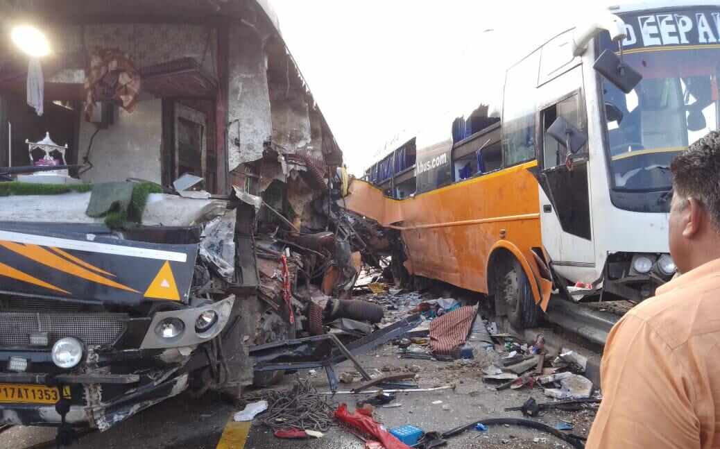 Purvanchal Expressway sadak haadsa: यूपी के बाराबंकी में पूर्वांचल एक्सप्रेसवे पर रविवार की देर रात खड़ी बस में तेज गति से आ रही बस ने ही टक्कर मार दी। हादसा इतना भीषण था कि बस के परखचे उड गये। हादसे में