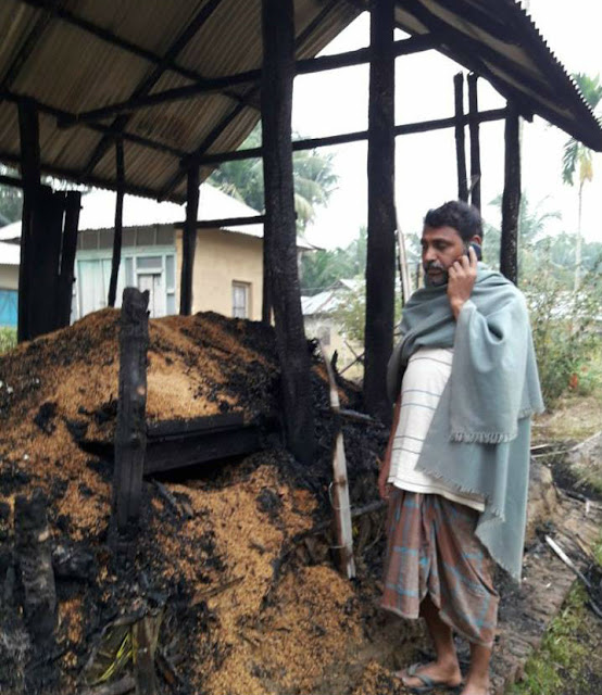 सीपीएम द्वारा मिली जानकारी के मुताबिक एपी इलाके के मार्क्सवादी कम्युनिस्ट पार्टी के सचिव शंकर चक्रवर्ती का घर बीजेपी के लोगों ने 15 मार्च की रात फूंक दिया है। घर को जलाने के लिए पहले पेट्रोल छिड़का गया, फिर आग लगा दी गयी। घर में लगी आग देखकर शंकर चक्रवर्ती की बूढी मां को हार्ट अटैक हो गया। फिलहाल वह गंभीर हालत में अस्पताल में भरती हैं।