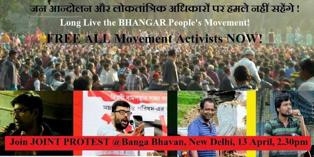 13 अप्रैल को दिल्ली में बंग भवन के सामने दोपहर 2.30 बजे अलग अलग जन संगठनों का संयुक्त विरोध प्रदर्शन आयोजित होना है।