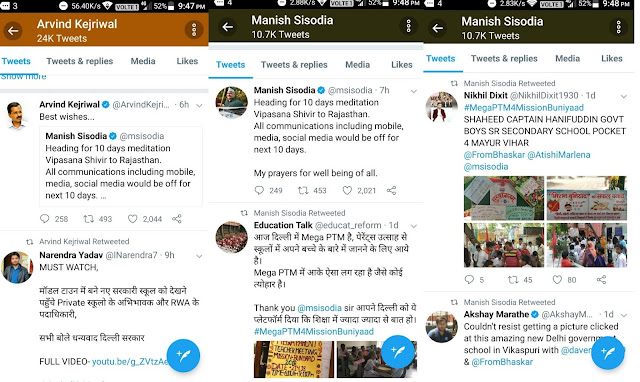 | ये रहे कल के अरविन्द केजरीवाल और मनीष सिसोदिया के ट्वीट, मगर स्वाति के अनशन तोड़ने को लेकर नहीं किया कोई ट्वीट |