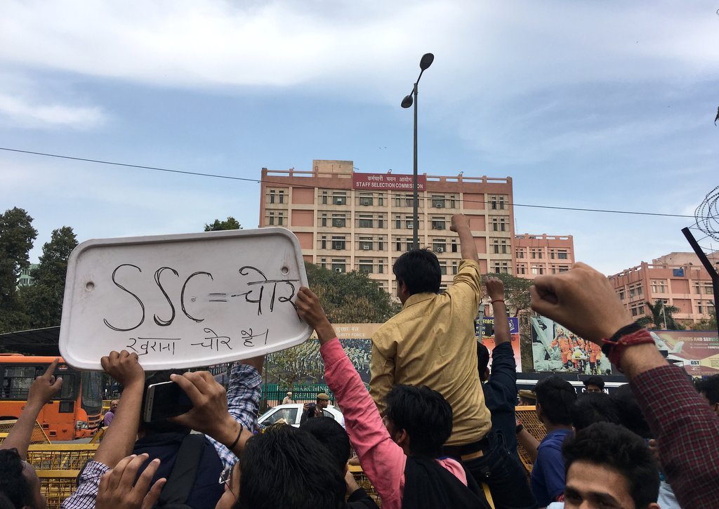 दिल्ली। पिछले कई दिनों से दिल्ली में स्टाफ सेलेक्शन बोर्ड यानी एसएससी के हेडक्वार्टर पर पूरे देश के अलग अलग इलाकों से आये युवा आंदोलन कर रहे हैं। इन युवाओं का आरोप है कि सरकारी नौकरी के लिए एसएससी द्वारा फरवरी में कराए गए एग्जाम में गड़बड़ी हुई है। युवाओं का कहना है कि पेपर लीक हुआ है, जिस वजह से अयोग्य लोग गड़बड़ी करके परीक्षा पास करने जा रहे हैं और योग्य उम्मीदवार पढ़ाई लिखाई और मेहनत करने के बाद भी सरकारी नौकरी हासिल नही कर पाएंगे।