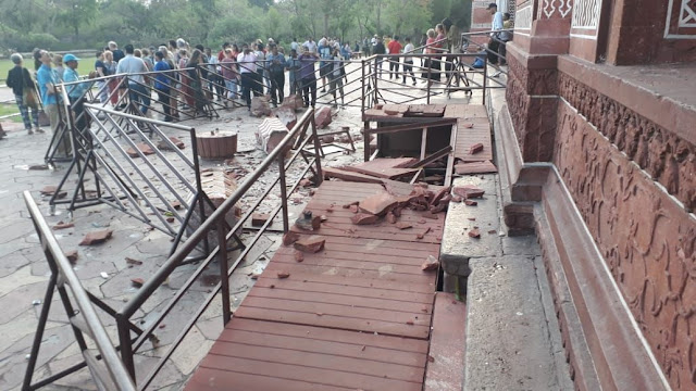 जब आंधी तूफान के बाद ताजमहल के पिलर टूटकर नीचे गिरे, तब ताज से पर्यटक जा चुके थे, जिससे भयानक हादसा होने से बच गया, हालांकि फिर भी दर्जनों लोग इसमें घायल हुए हैं।