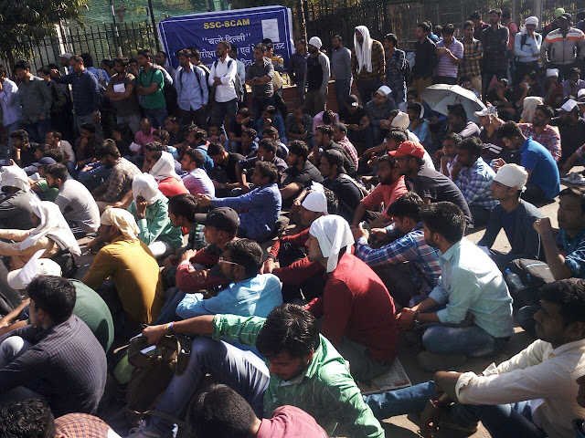 एसएससी घोटाले के खिलाफ 27 फरवरी से चल रहे प्रदर्शन में हज़ारों की संख्या में युवा एसएससी हेडक्वार्टर दिल्ली के सामने कर रहे प्रदर्शन