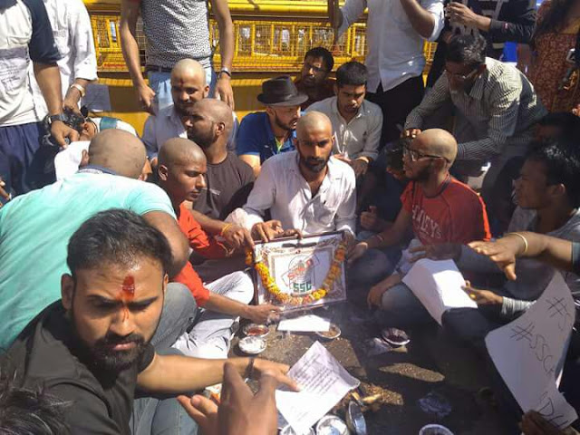 आज आंदोलनकारी छात्रों ने एसएससी और सरकार के तरफ़ से माँगें नहीं माने जाने के कारण विरोधस्वरूप सामूहिक मुंडन करवाया है। यह खबर छिटपुट ही मीडिया में आ रही है, जबकि देश में कहीं लेनिन तो कहीं पेरियार और अब अंबेडकर की मूर्तियों को ढहाने की खबरों ने प्रमुखता ले ली है।