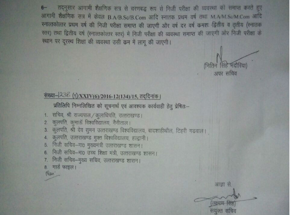 उत्तराखंड के डिग्री कॉलेजों में प्राइवेट परीक्षाएं पूरी तरह बंद