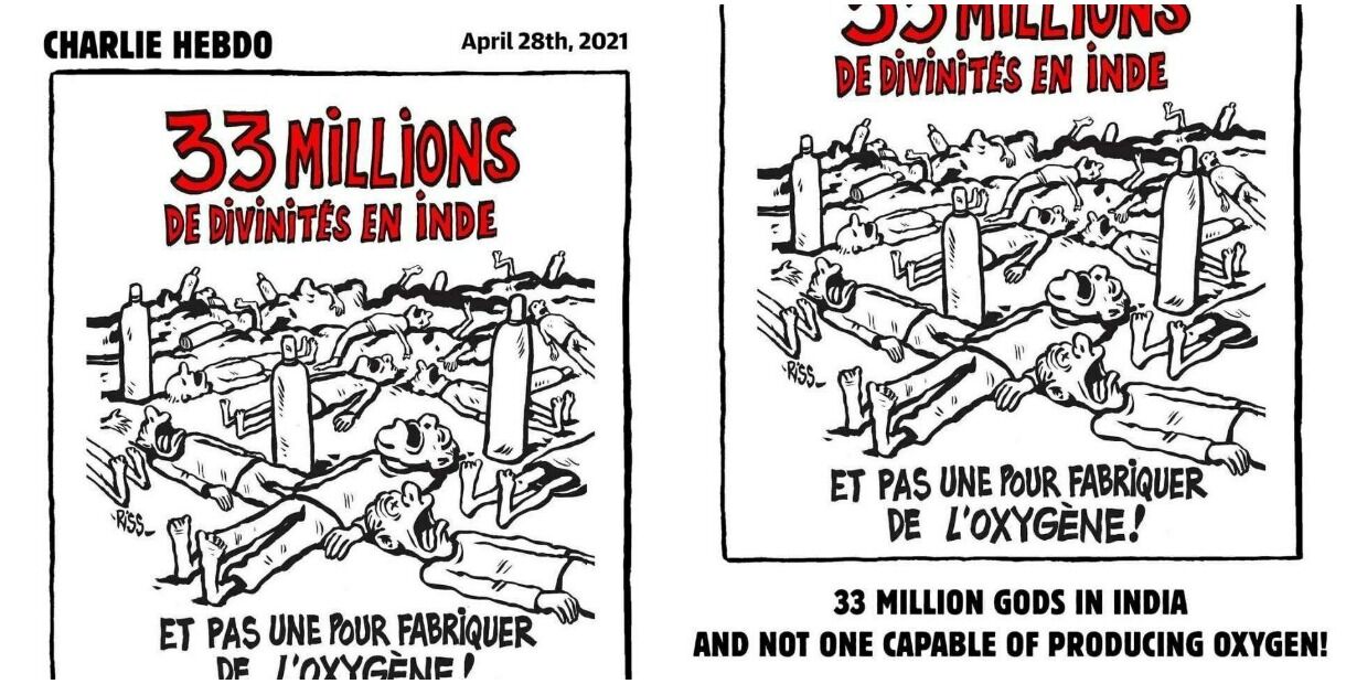 फ्रांसीसी पत्रिका चार्ली हेब्दो का हिंदुत्व पर कटाक्ष, कहा भारत में 33 करोड़ देवी-देवता फिर भी ऑक्सीजन की कमी